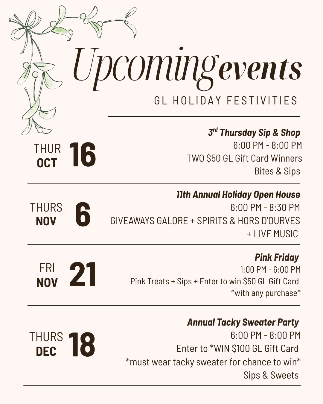 Upcoming Events Thursday, September 18, 2025 6:00 PM Sunday, November 30, 2025 8:00 PM Gracie Lane 4720 South Cooper Street Arlington, TX, 76017 United States (map) Google Calendar ICS RSVP